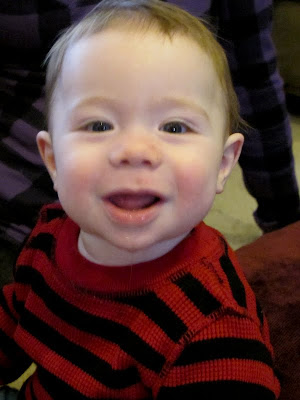This is Stevie wearing his Santa suit. He had to put this on before he could open presents! What a cutie!